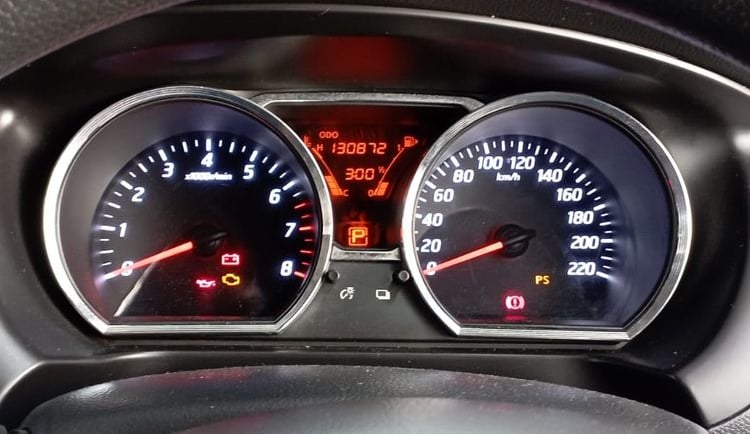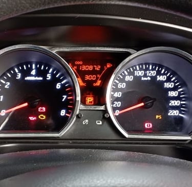 Penanda suhu mesin yang naik di atas batas normal pada panel instrumen kendaraan.